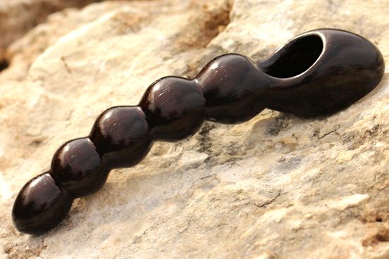 Slip a finger into the ring and enjoy this sculpture’s silky smooth globes. Better than beads, there’s no fear of sharp edges or knots with this meticulously carved piece of bedroom art.