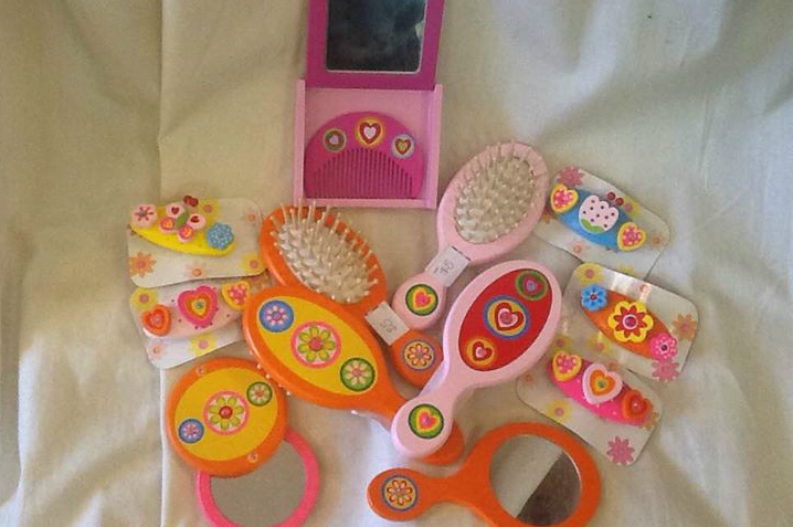$5.50-10 Wooden painted hair brushes, mirrors and barettes