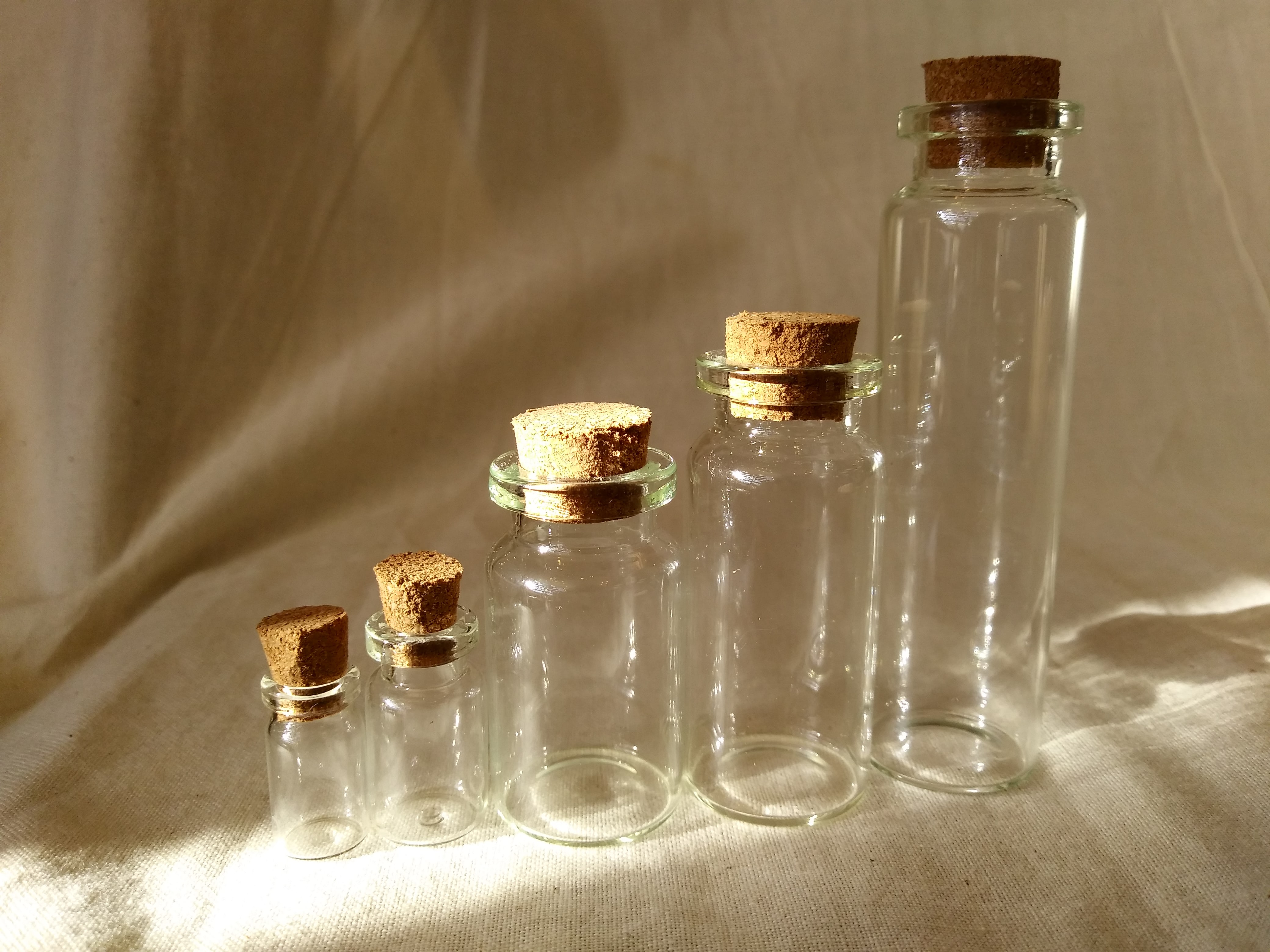 Delicate glass vials for all your DIY needs! Perfect for jewelry making, storing keepsakes, or creating custom gifts for your loved ones. Fill it with perfume, crystals, sand, pictures, or notes! Made with clear glass and natural cork to show off the prize held inside.