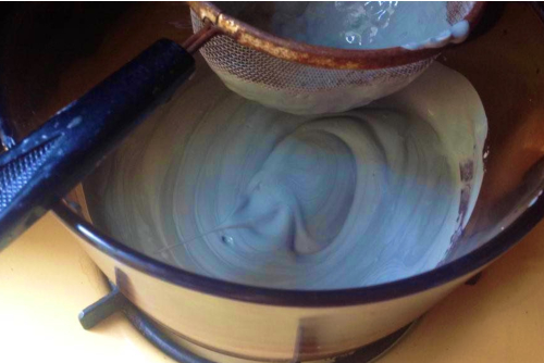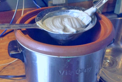 This magic material was freely given by earth and waters, but infused with many hours of loving labour. After soaking, grinding, blending, straining & boiling, I put the hot mixture through a 4x fine strainer. I sanitized for 24 hours in my zisha clay cooker.