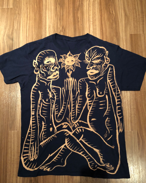 All pieces from Folk Magick feature original, one of a kind designs hand painted with bleach onto 100% cotton fabric.