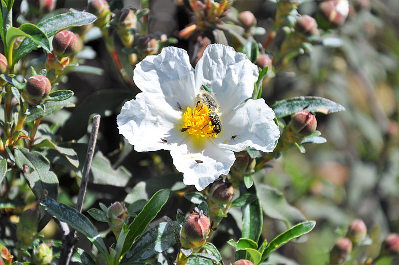 Cistus ladanifer is a species of flowering plant native to the western Mediterranean region. Also known as labdanum, it is an aromatic stimulating herb that has antibiotic effects.