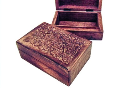 Store jewellery, gemstones or cards in these exquisitely hand-carved mango wood boxes.
