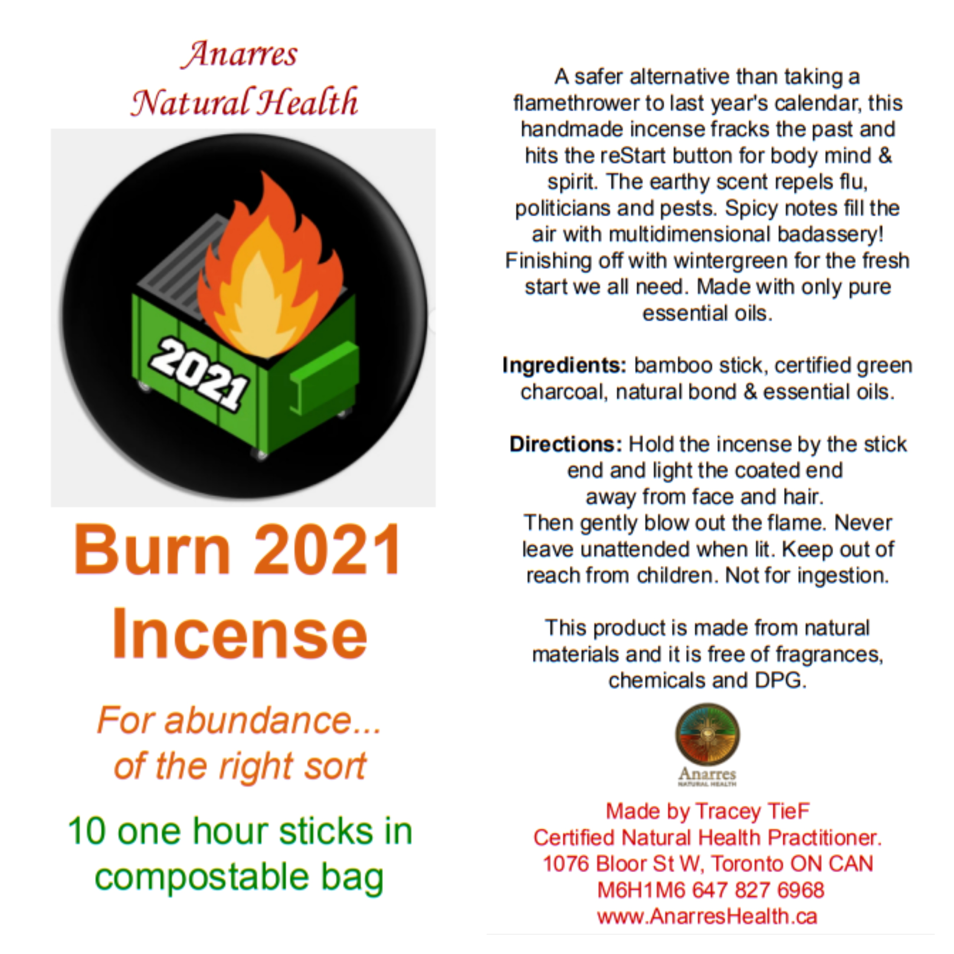 A safer alternative than taking a flamethrower to last year's calendar, this handmade incense fracks the past and hits the reStart button for body mind & spirit. The earthy scent repels flu, politicians and pests. Spicy notes fill the air with multidimensional badassery! Finishing off with wintergreen for the fresh start we all need. Made with only pure essential oils.
