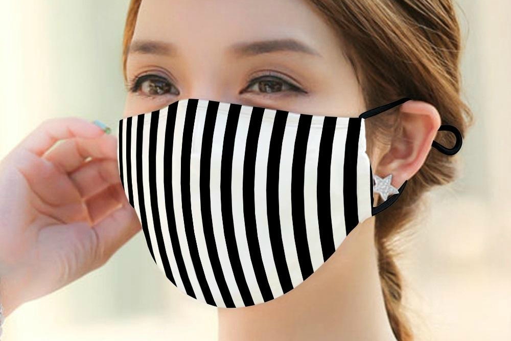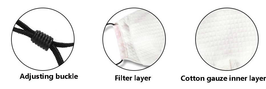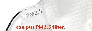 Masks are made from two layers of cotton with the sides open so an optional filter (not sold in the shop) can be used. The PM2.5, for example, measures 4.76”x 3.26” and will fit. Earloops are elastic and have an adjustable tab.