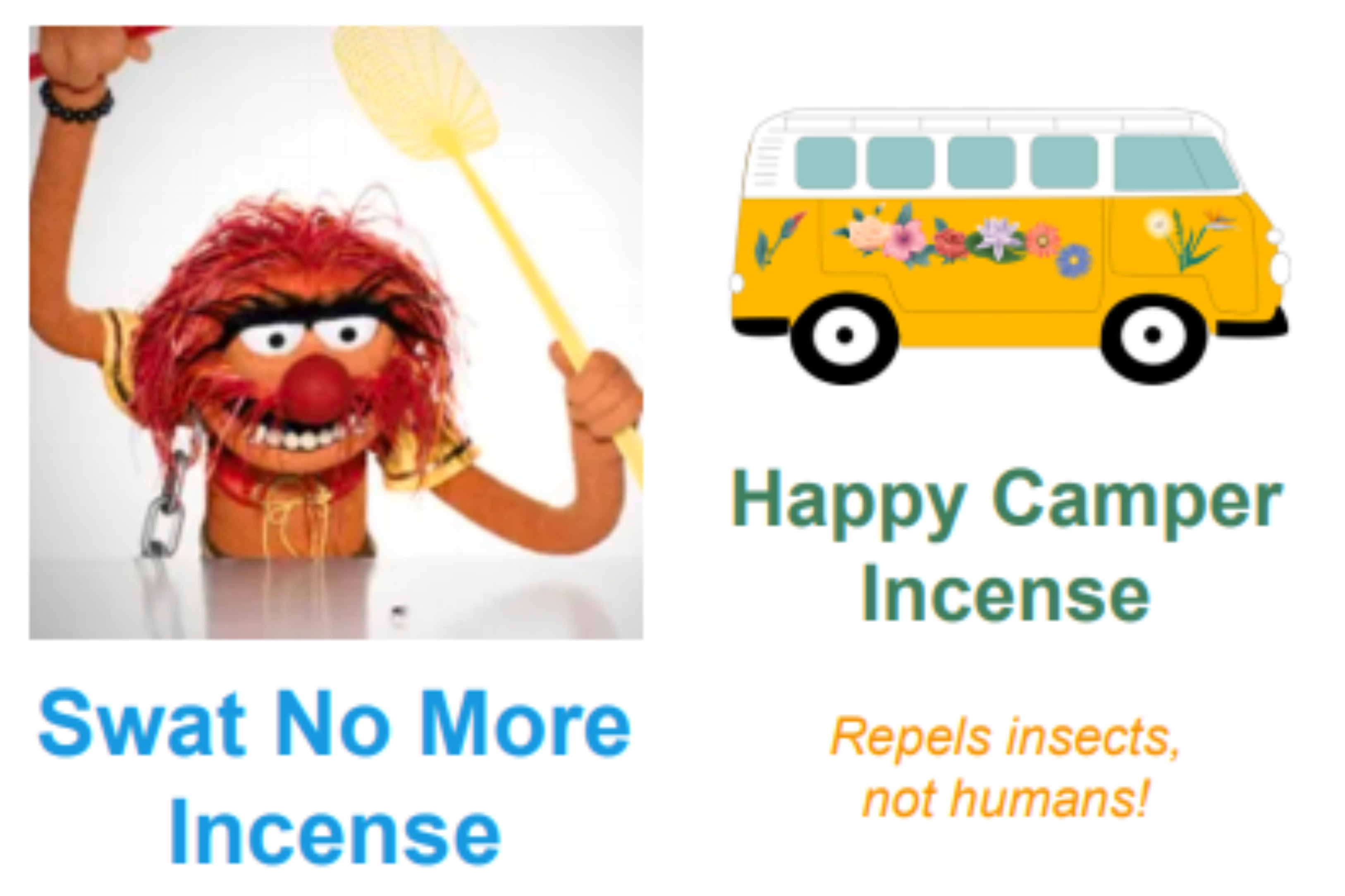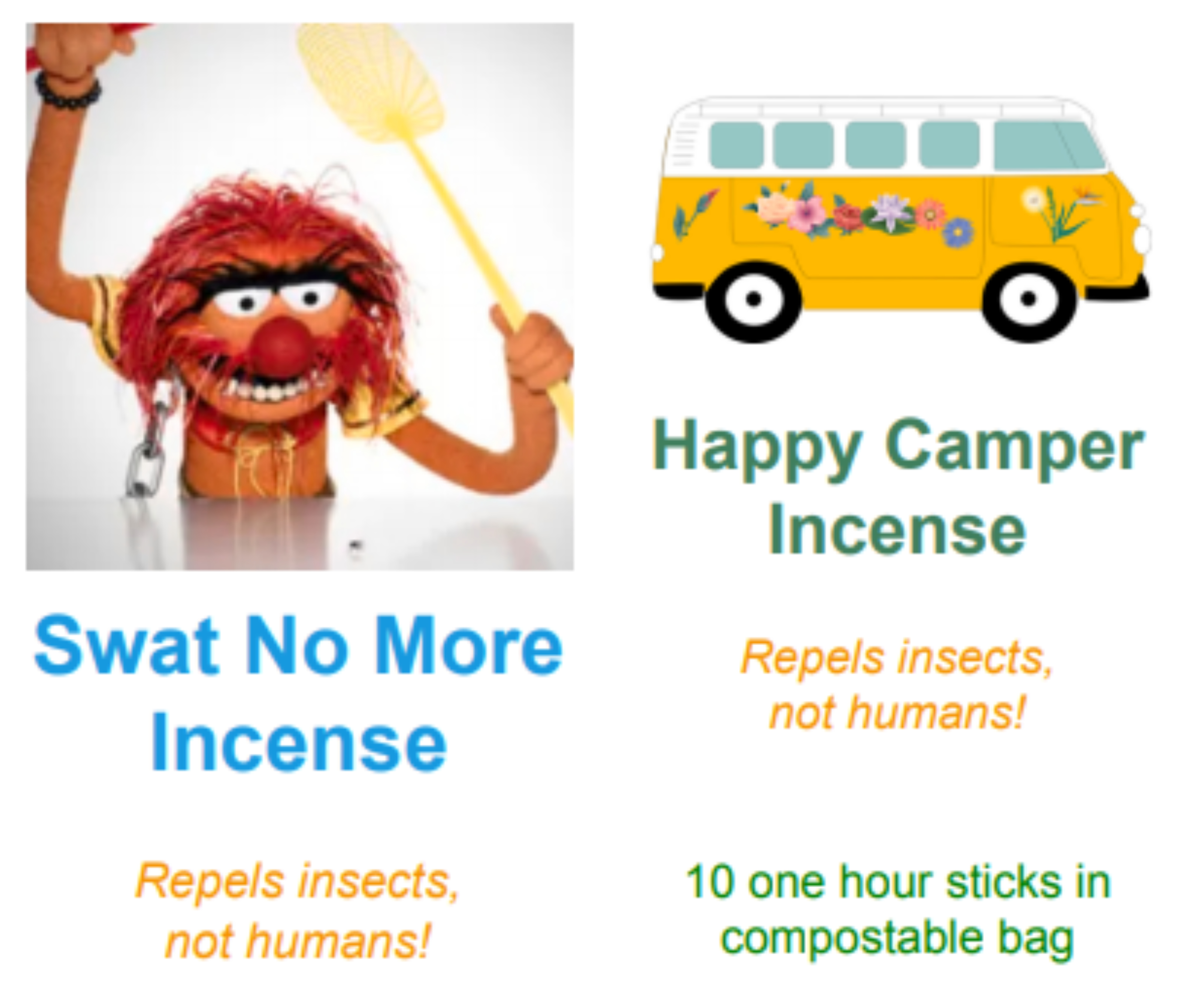 HAPPY CAMPER Ingredients: bamboo &/or wood stick &/or charcoal, essential oils of *tea tree Melaleuca alternifolia, marjoram Origanum majorana, cedarwood Texas Juniperus ashei