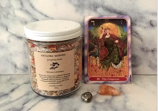 This luxurious bath was crafted to help you welcome all forms of abundance into your life. Basil, fennel, marjoram and orange peel come together to conjure serious Empress vibes. Know that the wealth due to you is on its way.