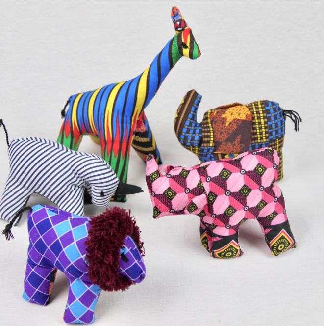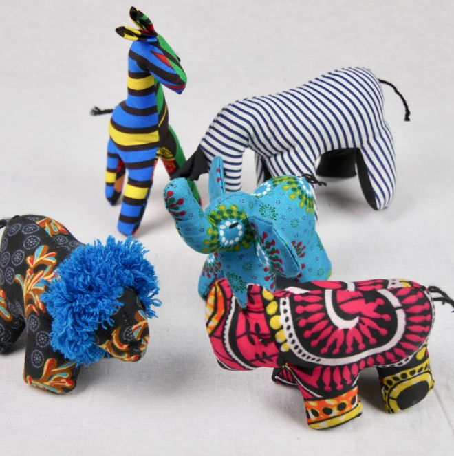 About The Artisans Each animal is unique and has been handmade by disabled artisans in Northern Uganda using African kitenge textiles. The artisans put all their love and care into each product. We hope that you find the diversity of size, pattern, and colour to be one of your animals' charms!