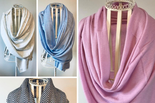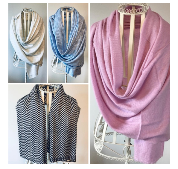 Tell us the colours you want and we'll send you photos of the scarves available, or pre-order and come to the shop to choose.