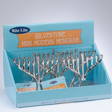 Whether you're on the road or just need a smaller menorah, this silvertone Mini Menorah is just the solution! One-piece solid Aluminum construction creates a stable Menorah in an attractively finished modern style. Fits standard birthday candles.