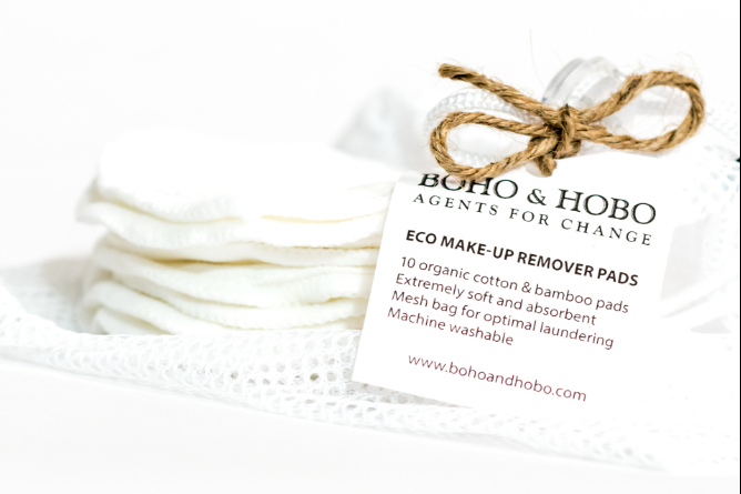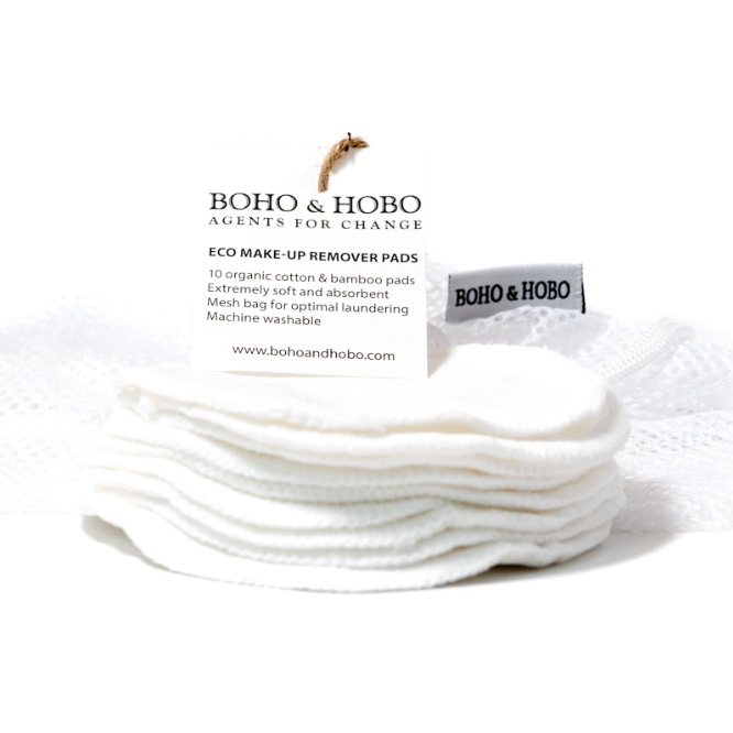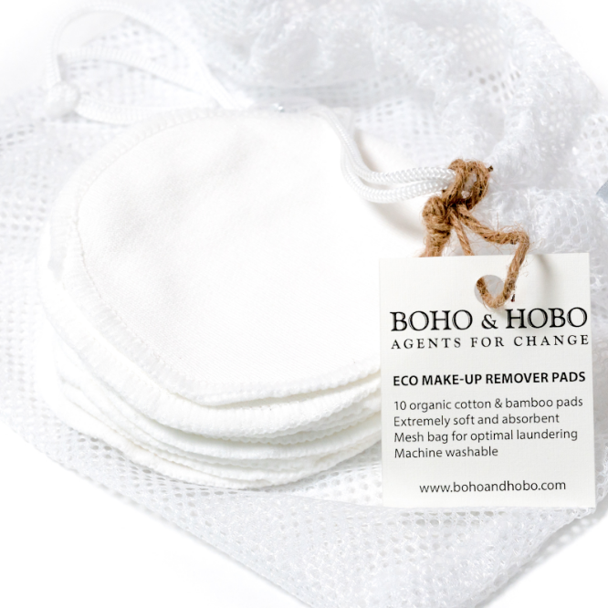 BOHO & HOBO™ eco-friendly, reusable, organic cotton and bamboo makeup remover pads will transform your skincare routine and help with living a zero-waste lifestyle. These gorgeous silky make-up pads are a blend of natural organic fibres and are so soft that your face will thank you. Furthermore, they won’t dry out your skin as the chemicals do on disposable wipes and are a great product for acne skin. You won’t regret making the switch to this sustainable option from disposable single-use makeup pads. Use with essential oils, almond oil, milk, micellar water, rose water or eye make-up remover lotion. Each set contains 10 washable, reusable, make-up remover pads and a mesh wash bag to keep them all together.