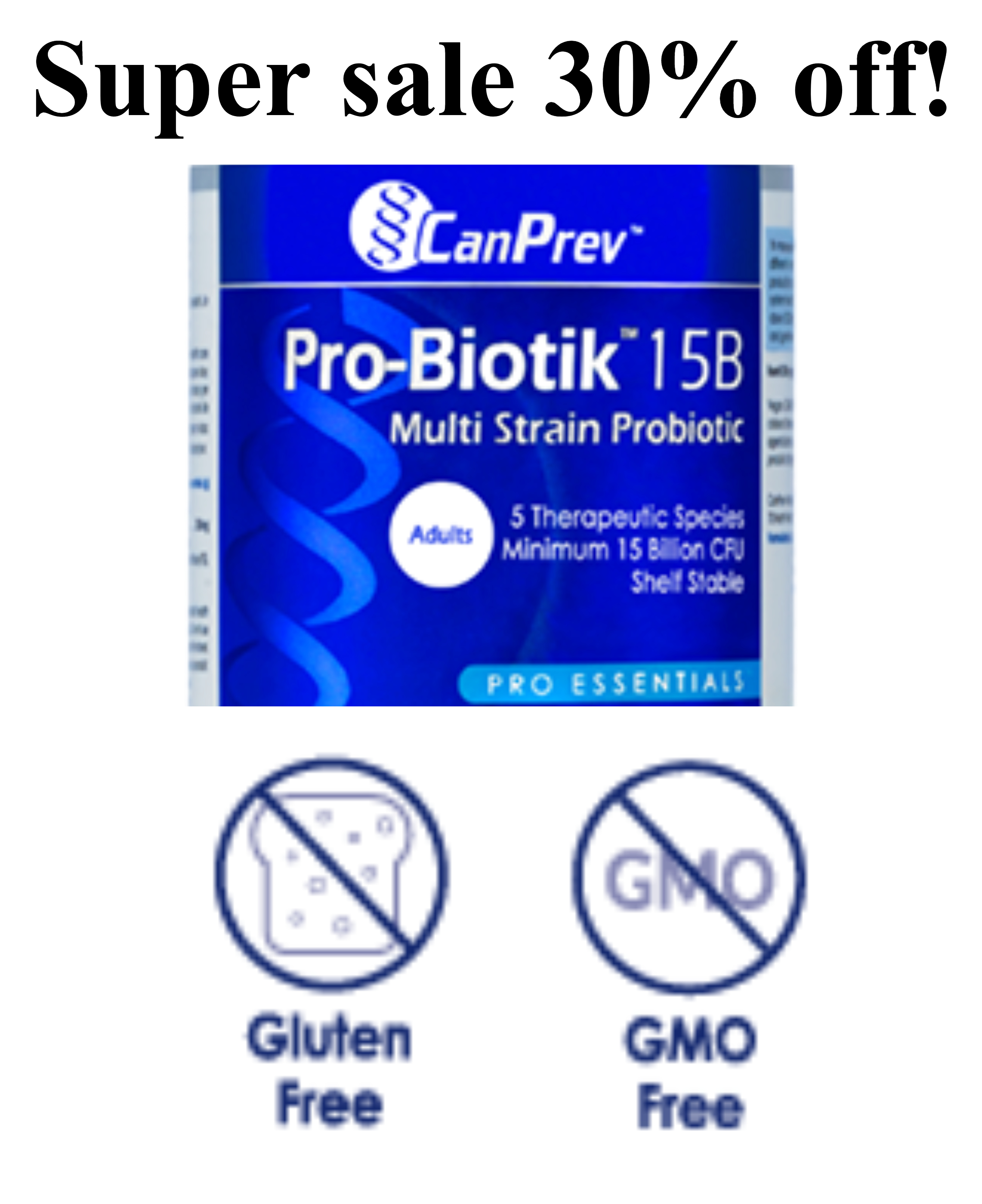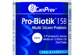 CanPrev’s Pro-Biotik™ 15B is a shelf-stable probiotic capsule formula containing five critical probiotic species naturally found in the human intestinal tract, including bifido-bacteria and lactobacilli. Each species is represented at optimal levels to enhance the natural gut flora and provide a health benefit. Pro-Biotik™ 15B is completely shelf stable for ease of use anytime, anywhere – no refrigeration is required. At the time of manufacture, CanPrev’s Pro-Biotik™ 15B contains forty billion CFU’s (colony forming units – a measure of friendly bacteria activity). By the time it reaches its expiry date it is still guaranteed to have an activity level of 15 billion CFU’s – now that’s impressive! Keep a bottle of Probiotik TM 15B in your bag, knowing with confidence that you have a probiotic that works for you, wherever life takes you.