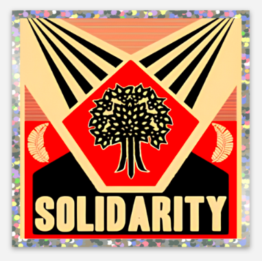 This 3" x 3" glitter edged sticker is removable and replaceable. When you buy a sticker or button, or leave the change for Palestine, you support farmers, the trees and the land that supports them.
